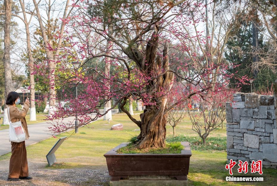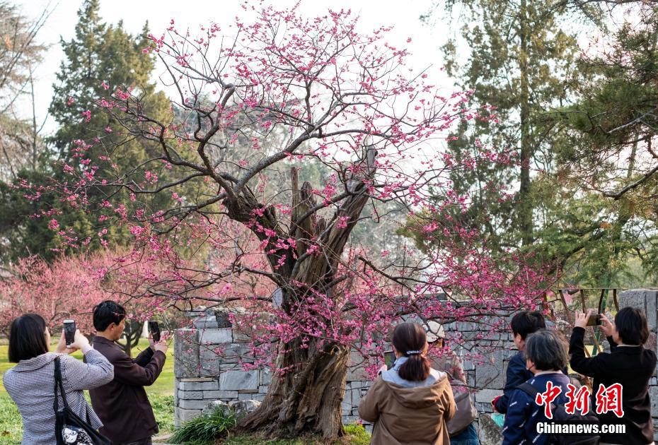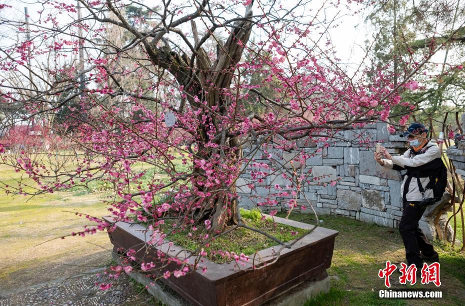 3月2日,南京玄武湖公园内一株明代古梅迎春盛开。据了解,这株古梅已经600多岁,历经风吹雨打,至今仍然年年开花。 中新社记者 泱波 摄