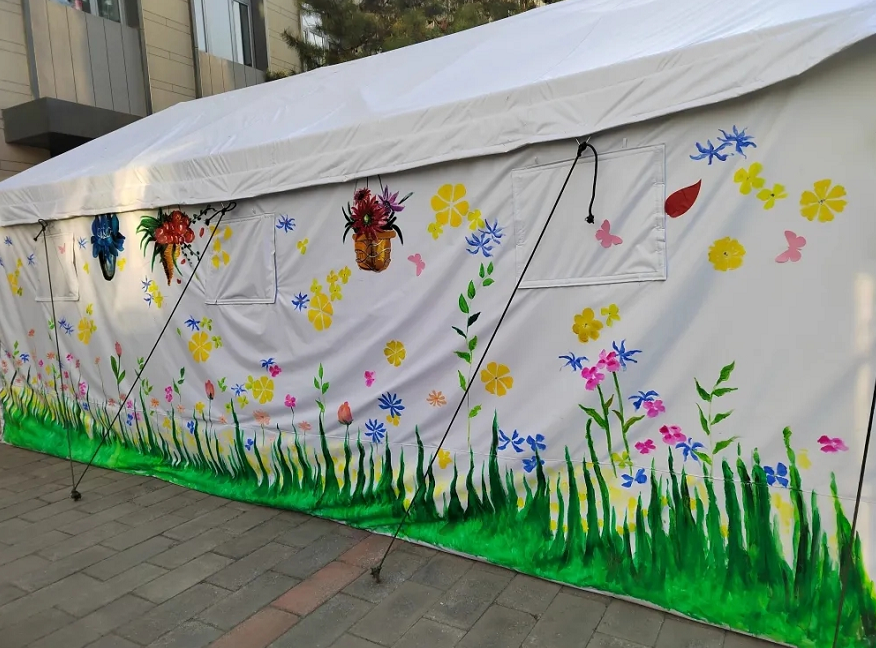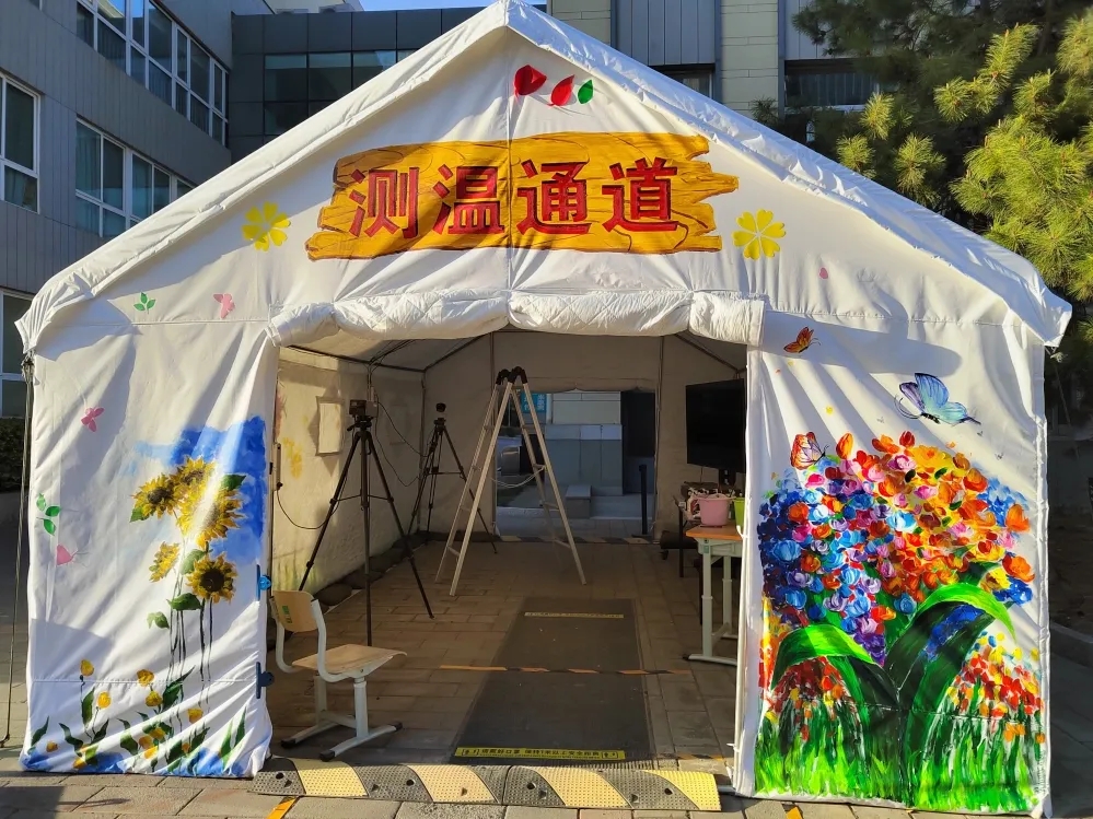 欣欣向荣的太阳花、翩翩起舞的彩蝶……3月28日,迎接初三、高三年级返校复课的第一天,东直门中学校门口的测温棚悄然变身。为做好学生安全复学复课,学校更换了新的测温棚,联盟校的老师们还拿起画笔,将春天的色彩以涂鸦形式绘制在学校的测温棚上,让初三、高三复课的学生在踏入校门的第一刻,就感受到校园的温馨与温暖。