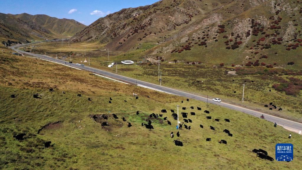 9月28日在同仁市瓜什则乡拍摄的大瓜公路(无人机照片)。新华社记者 张宏祥 摄
