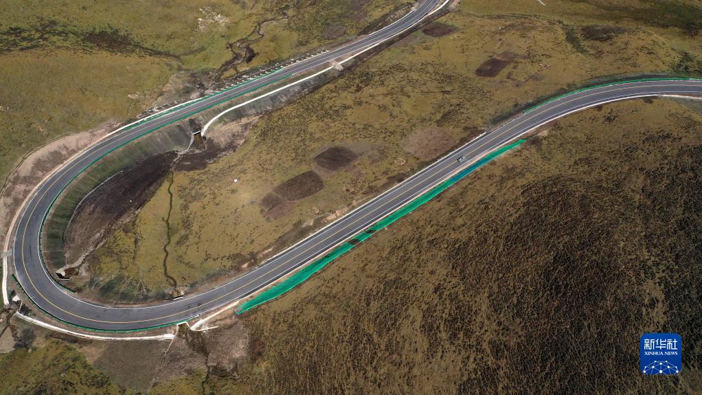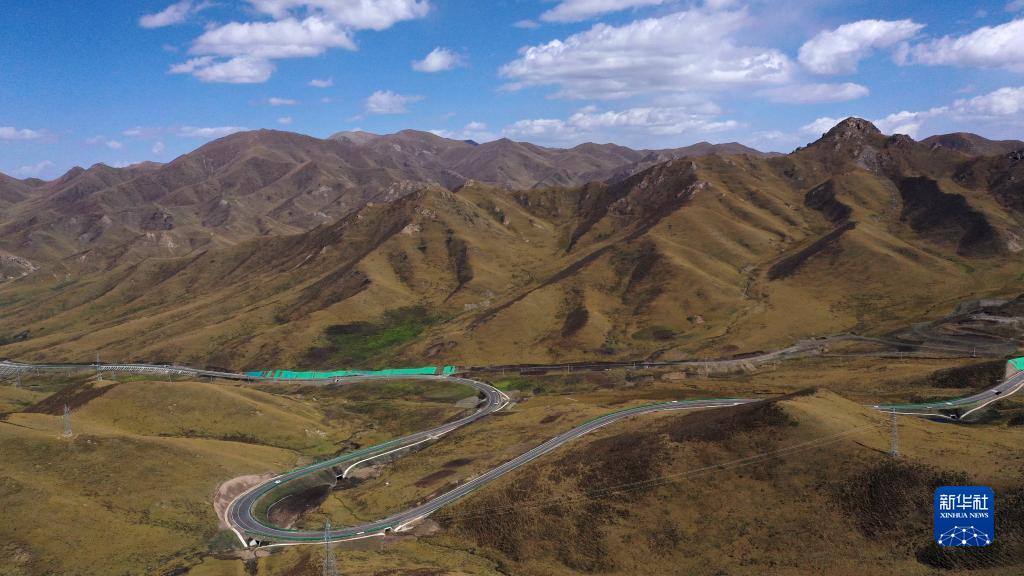 9月28日拍摄的同仁市瓜什则乡和当日通车的大瓜公路(无人机照片)。新华社记者 张宏祥 摄