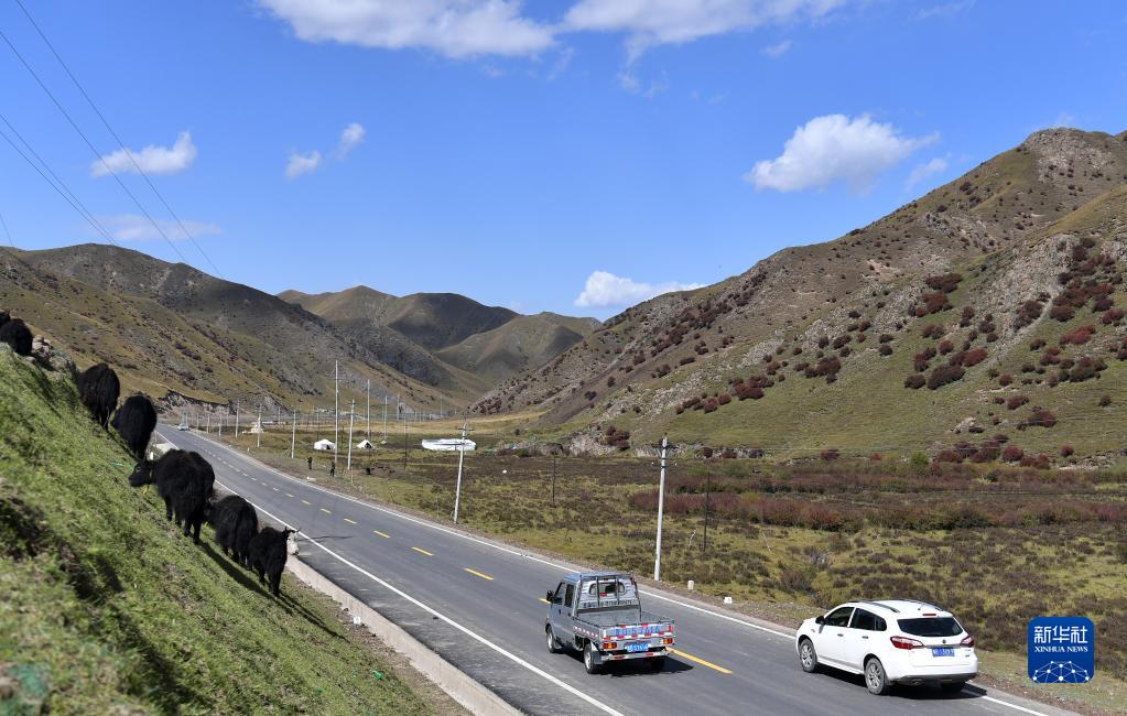 9月28日,汽车行驶在同仁市瓜什则乡境内的大瓜公路上。新华社记者 张宏祥 摄