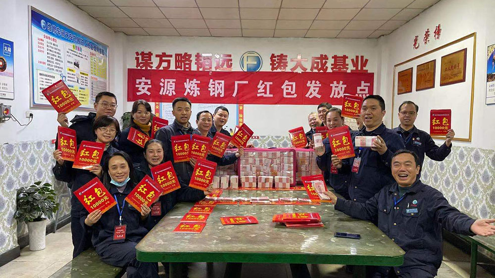 2021年2月1日,面对疫情延续,方大萍安钢铁落实方大集团2021年度工作会议上提出的建议,为每位员工发放一万元大红包。一个个红包点亮了一片“幸福红”,延续着方大在疫情下的爱和温暖。
