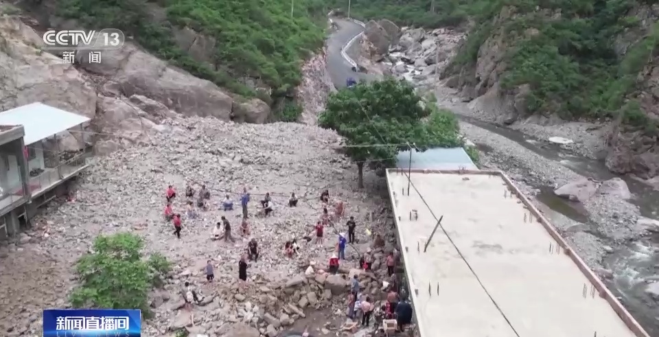 总台记者 王帅南:我现在在保定涞水县与张家口涿鹿县的交界处,受到前几日的连续强降雨和山洪的影响,省道241线被冲毁了500多米长的路段,在8月3日当地组织了大型的车辆设备进行抢修,目前还在连夜抢修中。