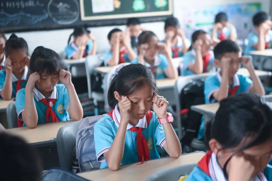 学生做眼保健操 / 徐昱 摄