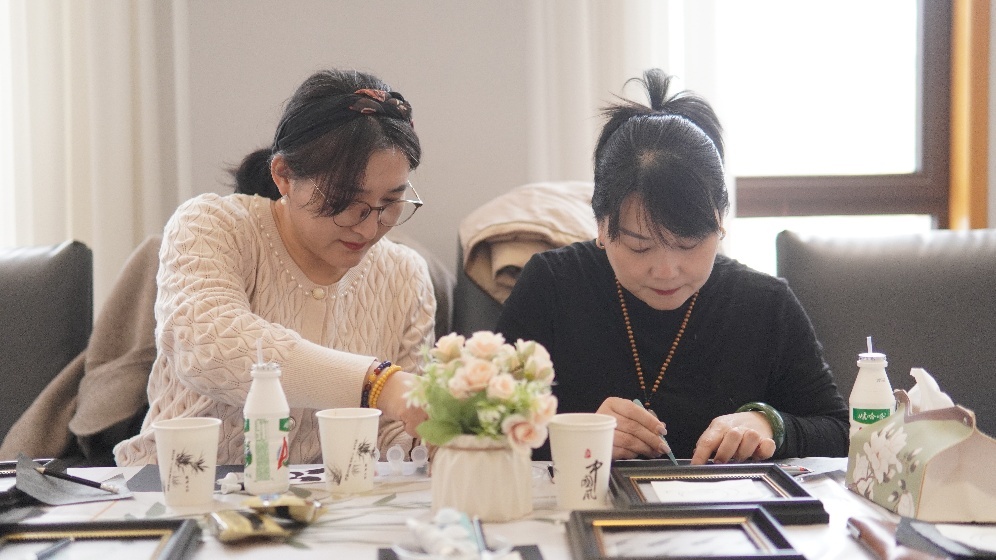 “茶果子”制作也是体验茯茶文化的重要一环,作为源于唐、兴于宋的佐茶糕点,“茶果子”种类十分丰富,其造型和选材则需要制作者们的独具匠心。当天下午还开展了非遗“螺钿相框”工艺品的制作活动,工作人员一边为大家详细讲解,一边进行耐心指导,女职工则裁刻钿片、镶嵌、打磨,完成了一件件精美的螺钿手工作品。