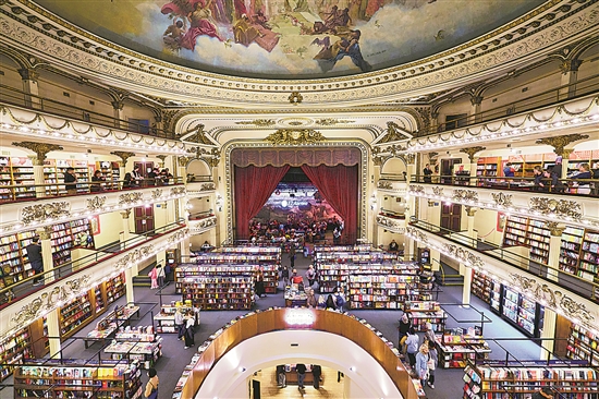 在阿根廷首都布宜诺斯艾利斯市中心的圣菲大道,有一座用建筑和文字凝结百年时光的雅典人书店。1919年,雅典人书店的前身“大光明剧院”正式落成。20世纪六七十年代,阿根廷遭遇经济危机,加之电影和电视的普及,大光明剧院失去了往日荣光,渐渐走向衰落。