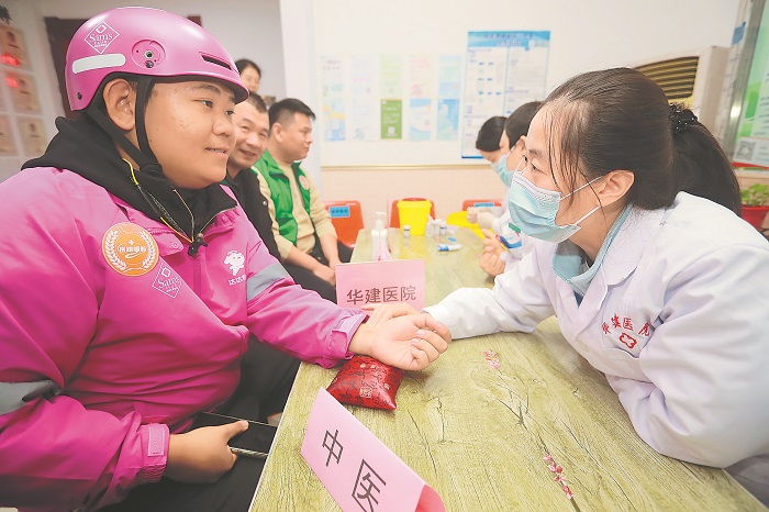 10月16日,天津市河北区总工会、江都路街道总工会、天津河北华建医院联合打造的河北区首个“小哥医院”正式启用,并为现场新就业形态劳动者代表发放针灸福利卡,构建“工会+医院”新就业形态劳动者健康关爱长效机制。