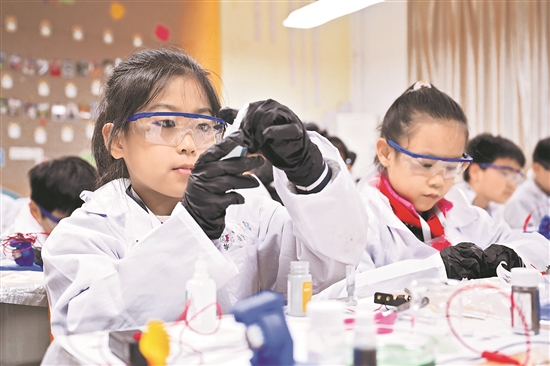 10月18日,学生在西安市新城区太华路小学参加科学实验操作赛。