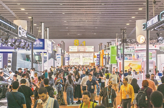 这是10月19日拍摄的第138届广交会一期展馆新能源汽车及智慧出行展区。
