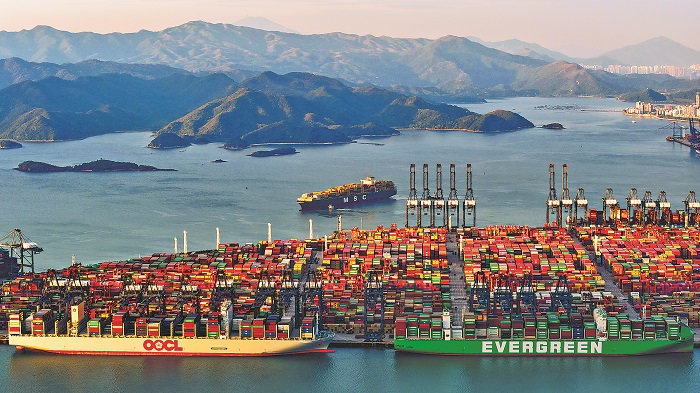 10月26日,位于广东省深圳市盐田区的盐田港,码头桥吊、龙门吊等自动化设备有序运转,集装箱装卸繁忙。