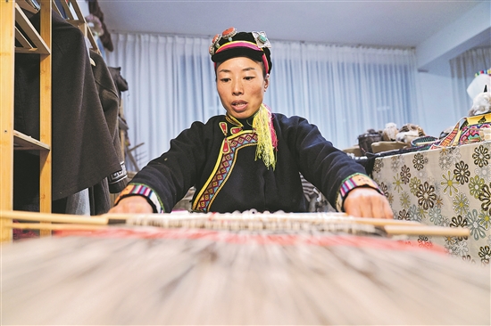 2016年,她创立能卡曼纺织手作工作室,利用传统技艺,结合创新设计,制作手工艺品。随着订单变多,能卡曼把订单分享给村里的妇女。目前已有50余名妇女在能卡曼带动下实现灵活就业,人均年收入3000元至3万元不等。