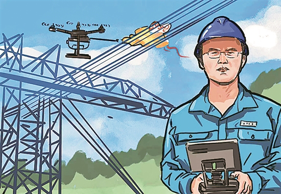 2020年,他带领团队创新推出“一控六机”自主巡检模式,应用无人机喷火、激光除异物、红外测温等技术,使线路综合巡检效率较人工提升6倍;2022年,“无人机+导线挂架+电动升降装置”问世,作业人员无需爬塔就能“一键直达”导线完成作业;2024年,多功能载荷装置的研发让无人机具备绝缘子检零、地线修补等检修功能,真正实现从“用眼看”到“动手干”的跨越。