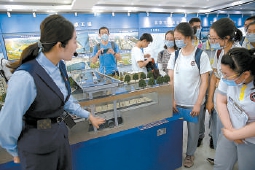 北京二中高一年级师生日前来到南水北调中线一期工程终端团城湖明渠广场,开展课程实践活动。同学们参观了南水北调工程总体规划展、团城湖明渠水系,深入了解这一国家战略性工程。北京日报特约摄影 周良