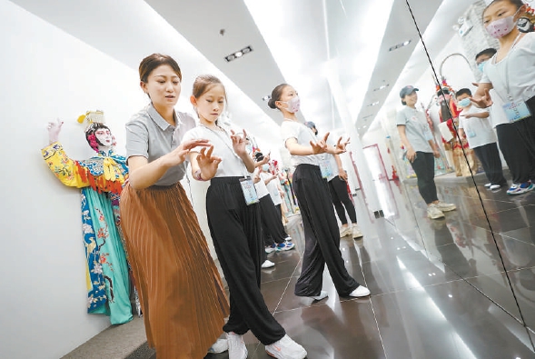 昨天,由首都文明办主办的暑期“最美少年”传统艺术学习体验活动开幕,孩子们来到北京戏曲艺术职业学院,在老师指导下感受京剧文化魅力。 北京日报记者 方非摄
