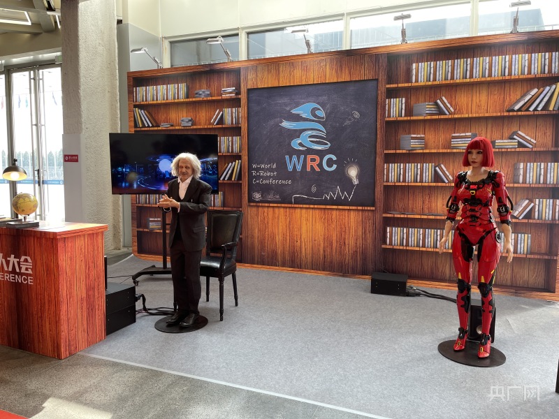模拟爱因斯坦的人形机器人(央广网记者 黄玉玲 摄)