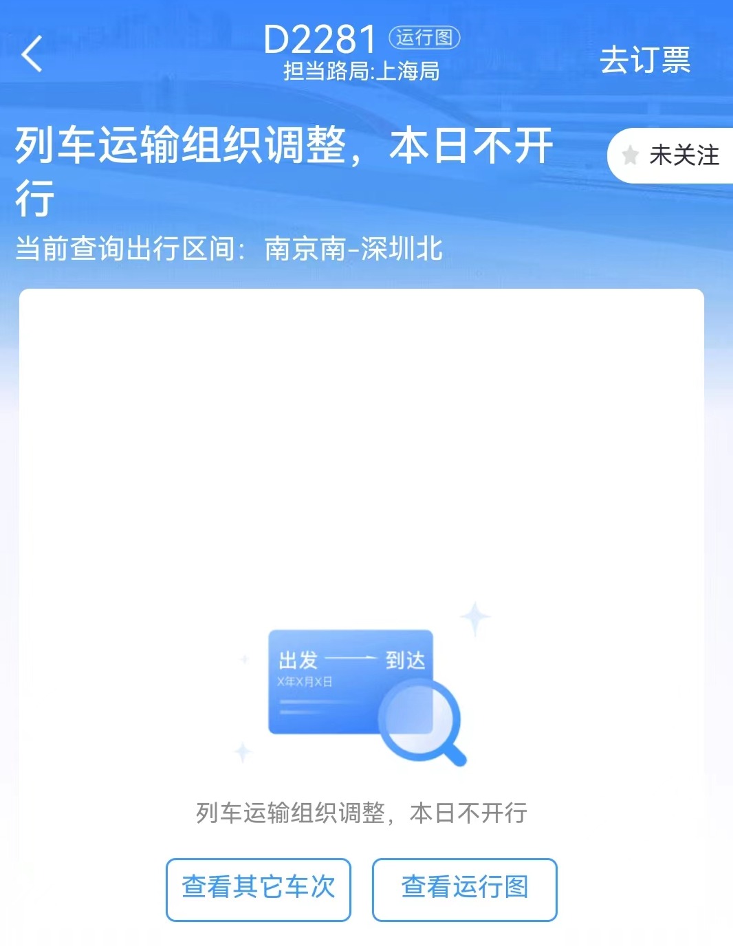 记者在中国铁路12306官网上查询,发现D2281次列车目前已暂时停运。