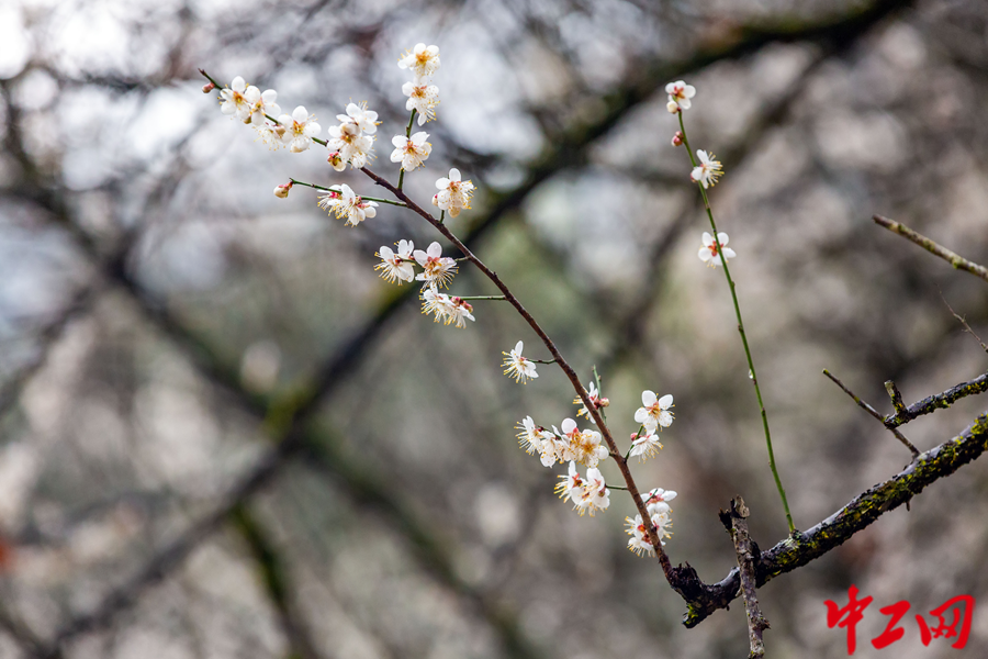 中工网讯 2022年1月9日,江西赣州市大余县梅关古驿道两旁的梅花树迎春绽放,吸引了不少游客前来赏花。梅关古道始通于秦汉,是全国保存得最完整的古驿道。