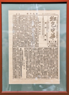 一张1932年4月21日的《红色中华》报见证了时代的最强音。报纸上刊发的是毛泽东以中华苏维埃共和国临时中央政府主席名义起草发布《中华苏维埃共和国临时中央政府宣布对日战争宣言》。时过境迁,宣言中的口号依然响亮,“驱逐日本帝国主义出中国,反对一切帝国主义瓜分中国,以求中华民族彻底的解放和独立”。张源介绍,起草宣言期间,毛泽东正在江西瑞金东郊的一间古庙中休养。“当时红军正在接受国民党的围剿,但毛泽东还是义无反顾地代表中华民族奋力发出了时代的最强音。”