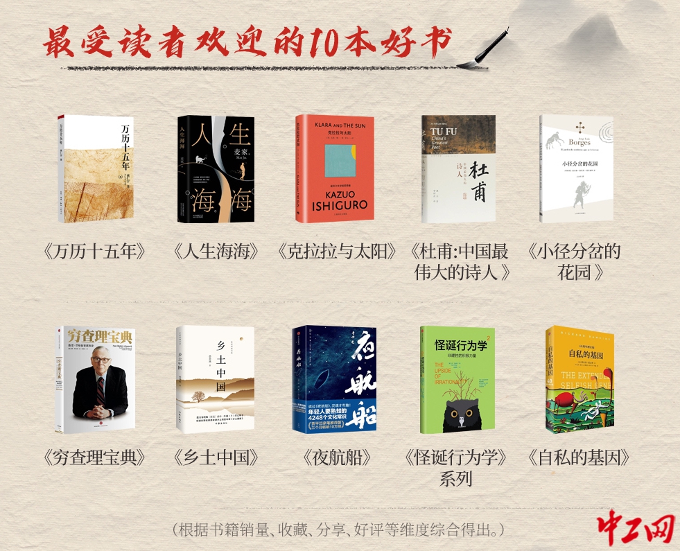 阅读榜单显示,《乡土中国》《穷查理宝典》《万历十五年》《人生海海》《克拉拉与太阳》等成为本次活动最受读者欢迎的书目。此外,《枪炮、病菌与钢铁》《局外人》《全球通史》《数学之美》《西方现代思想讲义》位居社科经管、文学、历史、百科、艺哲类畅销榜单的前列。