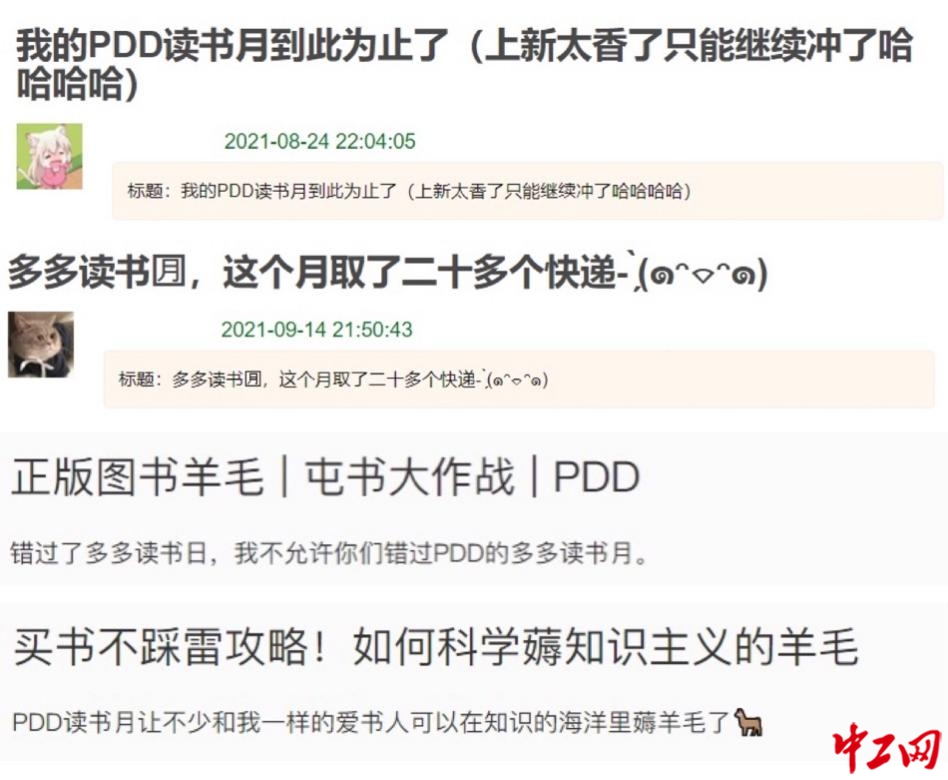 过去一个月,如果在微博、豆瓣或小红书搜索“多多读书月”,类似场景会频繁出现:有网友一口气用完了活动的10本限购名额,热情晒书之时添上一句“战果分享”、“花最少的钱,买最多的书”;又或者,网友前一日刚发帖说“我的PDD读书月到此为止了”,几天以后,帖子主题又加上了一行字(上新太香了只能继续冲了哈哈)。更有读者写就“多多读书月”屯书心得,高呼“YYDS”。