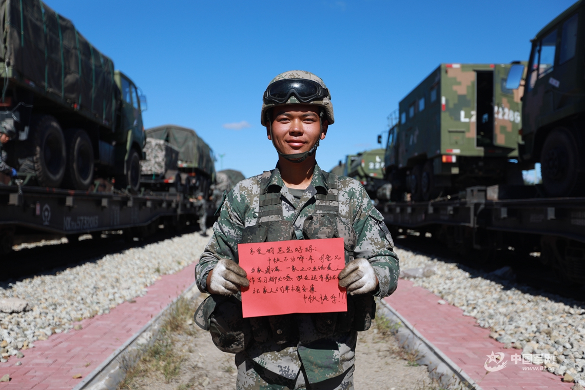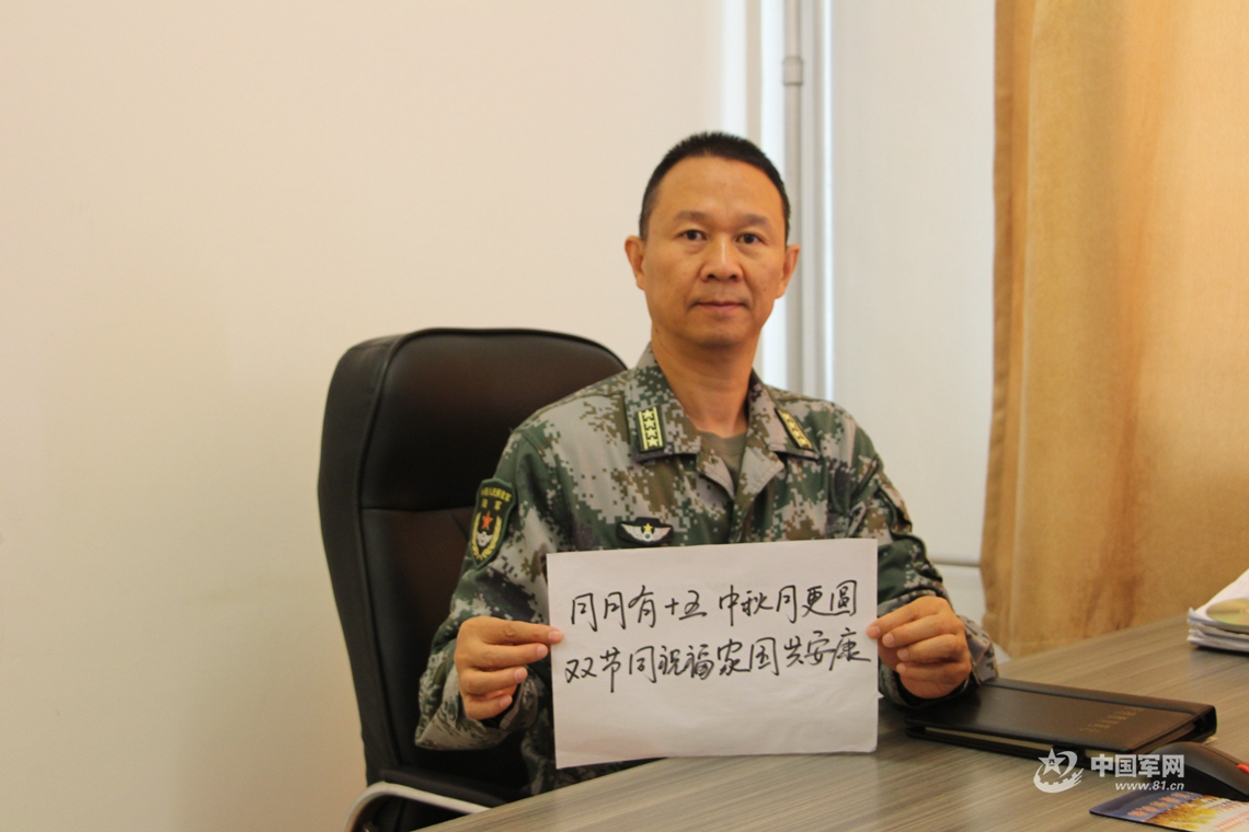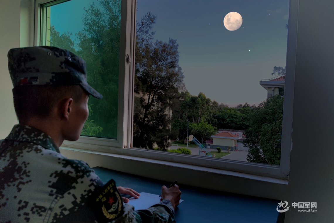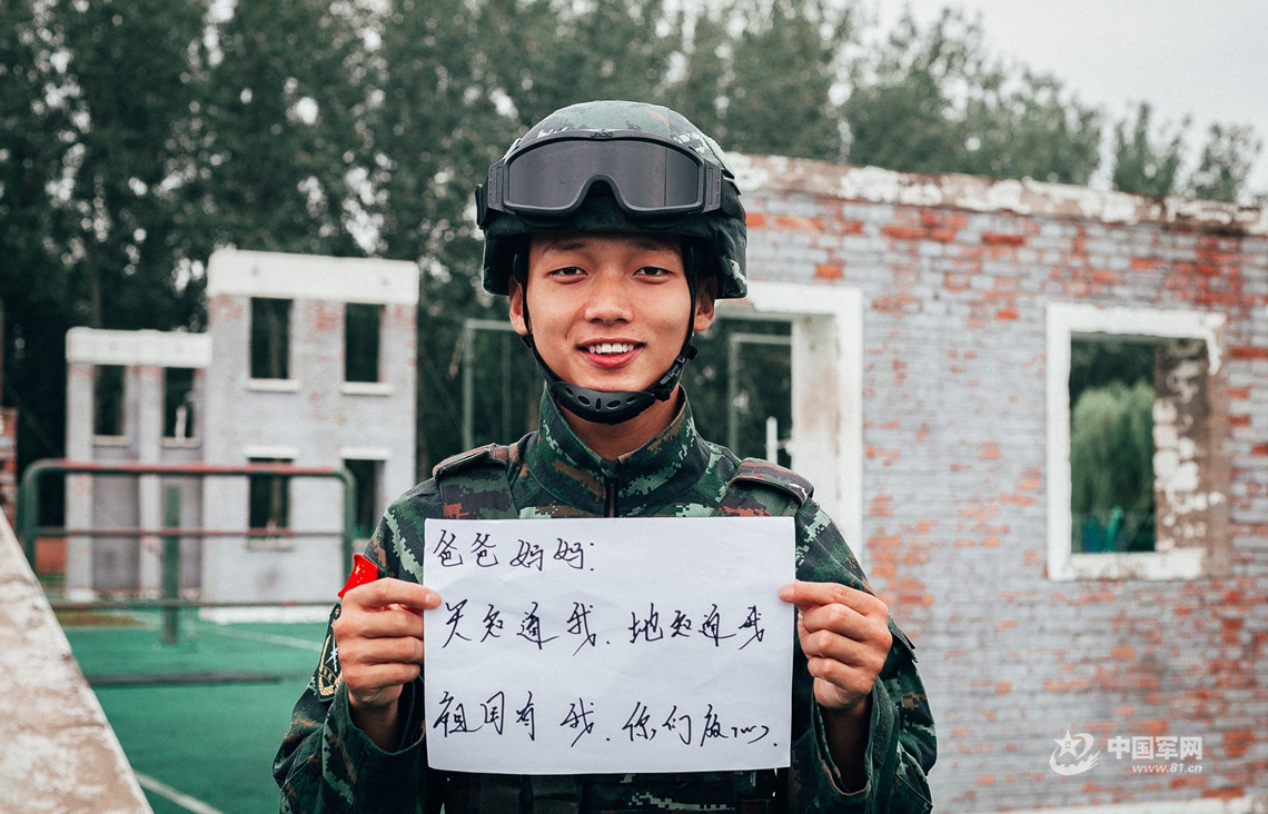 几年的军营磨练,让我从懵懂无知走向成熟稳重,我也愈发懂得你们的不易。每逢佳节,当我守护着万家灯火,最思念是家中的你们!爸爸妈妈,儿子在这里一切安好,希望家中的你们健健康康、开开心心!中秋节快乐!