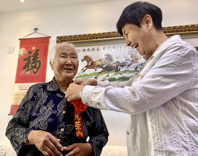6月30日上午,兰州市人大常委会副主任、市总工会主席段迎存来到兰州市七里河西果园镇鹞子岭村,将“光荣在党50年”纪念章和绶带戴在老党员马月兰的胸前。马月兰激动地说:“感谢党和国家的关怀和温暖,我会永远听党话、跟党走。”