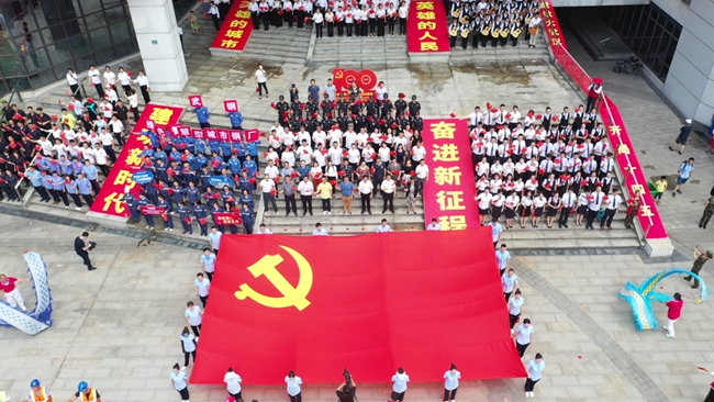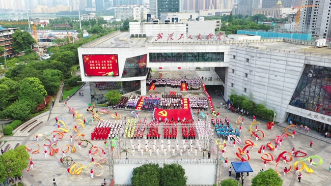 原标题:武汉:职工演绎红歌快闪庆祝建党100周年