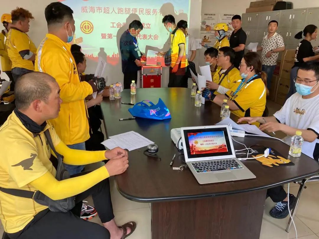近日,山东省威海市超人跑腿便民服务公司(美团外卖)工会首届会员代表大会召开,会议依法选举产生了公司(美团外卖)首届工会委员会、经费审查委员会和女职工委员会。这标志着99名美团网约送餐员加入了工会大家庭,威海市环翠区新业态入会工作取得新成果。