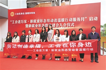 “工会进万家·新就业形态劳动者温暖行动服务月”启动暨新就业形态群体建会入会仪式。(卢月 摄)