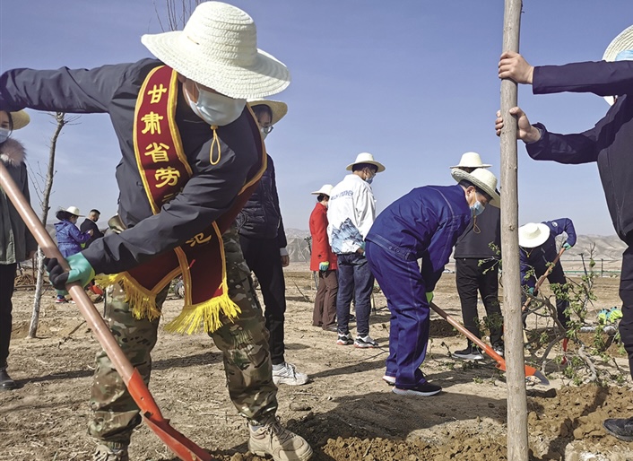 原标题:甘肃开展劳模工匠义务植树活动