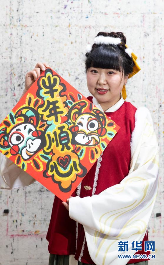 从2015年起,孙博秀芳开始在成都的社区、文化中心、博物馆展示自己手绘创作的成都年画。她的众多作品入选省、市工艺美术展。现在,孙博秀芳在创作的同时,开始在成都年画创作基地教孩子们画年画、练书法。新华社记者 江宏景 摄