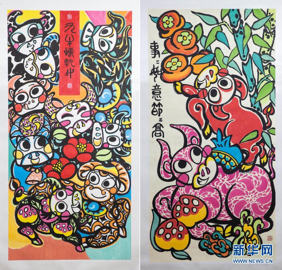 这是孙博秀芳今年创作的代表作《九牛转乾坤》《事事如意节节高》(2月2日摄)。 新华社记者 江宏景 摄
