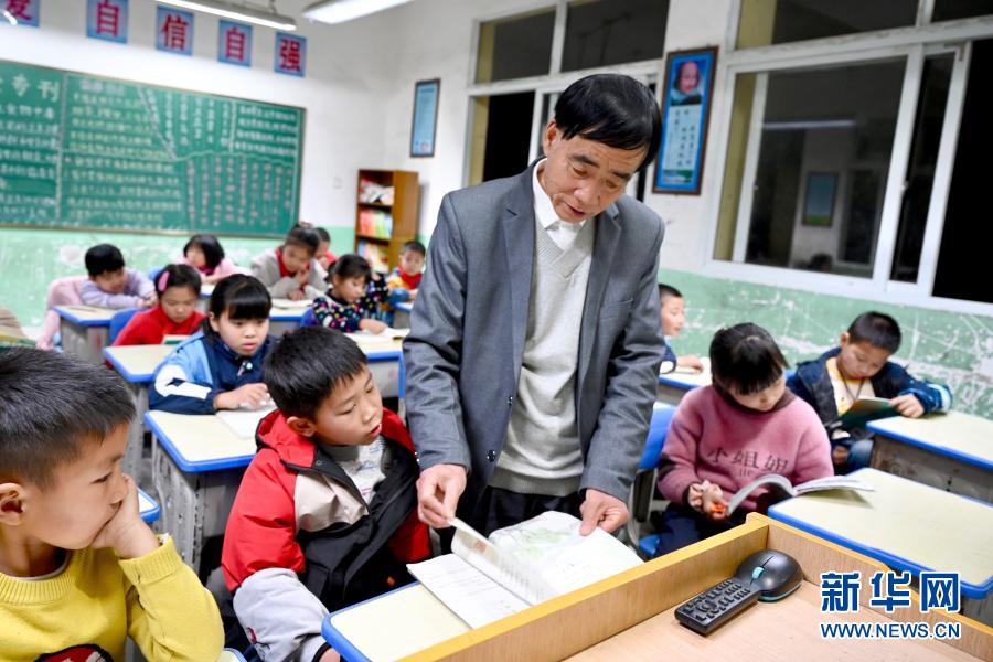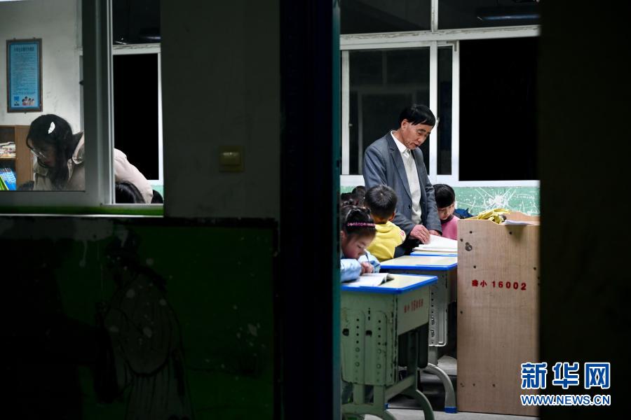 2月28日,庄桂淦在辅导寄宿的孩子上晚自习。新华社记者姜克红摄