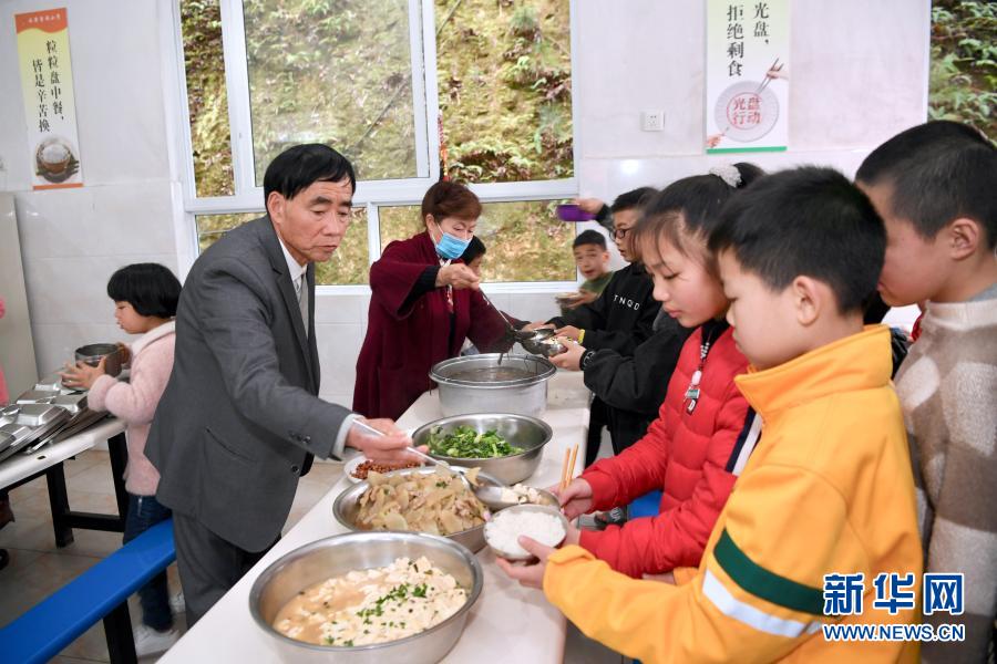 3月1日,庄桂淦与妻子梁纯爱在帮寄宿的孩子打饭。新华社记者姜克红摄