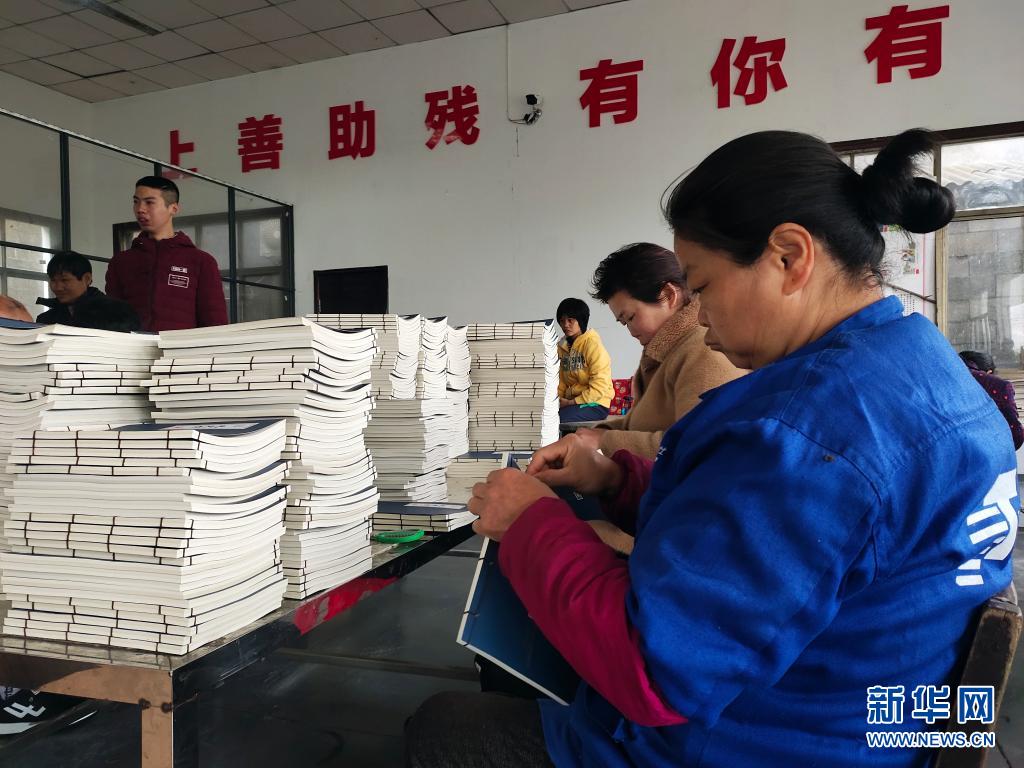 残障人士在长沙市上善助残服务中心的厂房内包装图书(4月25日摄)。