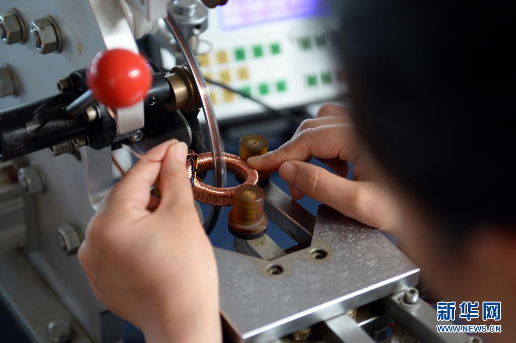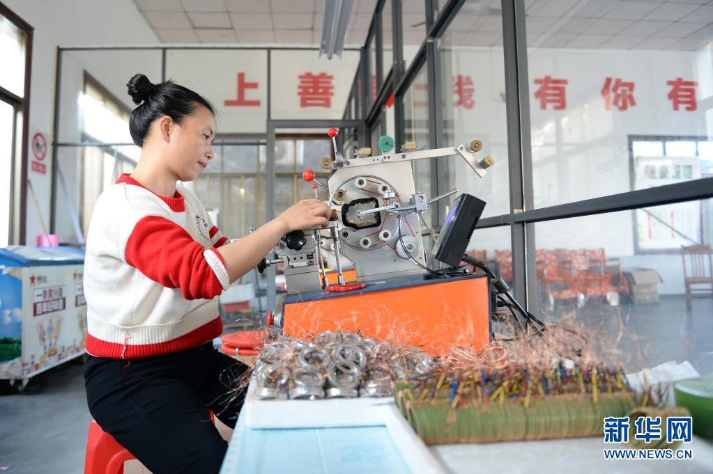 残障人士在长沙市上善助残服务中心的厂房内加工电子原件(5月14日摄)。