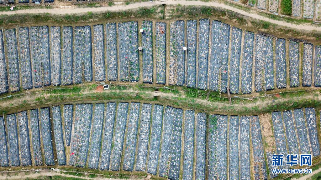 残障人士在长沙市上善助残服务中心的“同心农场”劳作(5月14日摄,无人机照片)。
