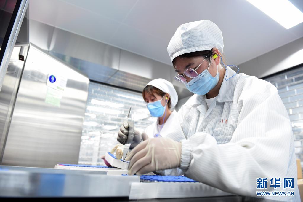 5月20日,在安徽智飞龙科马生物制药有限公司新冠疫苗生产线上,吴琼(前)将机器灯检后的疫苗装盒。吴琼出生于2000年,是安徽智飞龙科马生物制药有限公司新冠疫苗生产线上的一名疫苗灯检员,自3月份公司研发的重组新型冠状病毒疫苗(CHO细胞)批准紧急使用以来,吴琼每天工作十小时以上,每天经过她手中的疫苗超过10万剂。她说:“我要细心负责,让人们打上放心疫苗。”