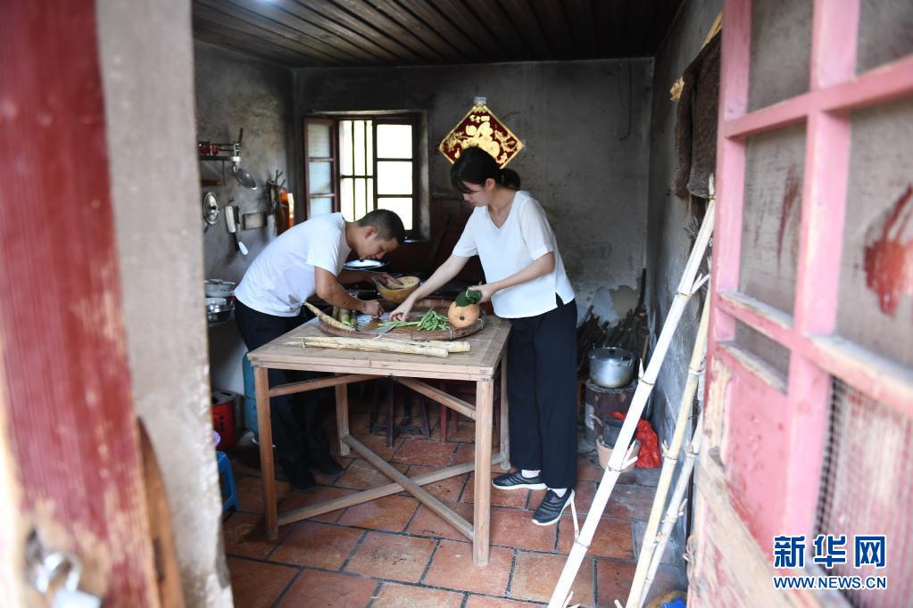 5月19日,柯嘉华(左)与周晰行走在南塘村的山路上。