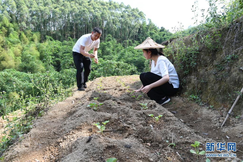 5月19日,柯嘉华和周晰行走在南塘村塔尾自然村的山地里。