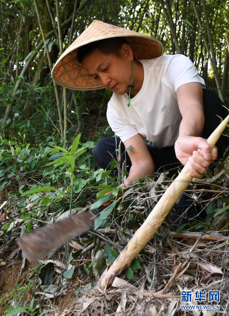 5月19日,柯嘉华在南靖县南坑镇南塘村塔尾自然村的竹林里砍石笋。