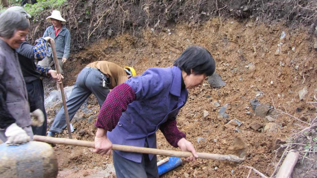 2006年正月,我带领8名村民正式向敢李山凿石取道,有7个人年龄超过60岁。年轻人耐不住贫困都出去打工,庄里只剩下20多名老人和小孩。