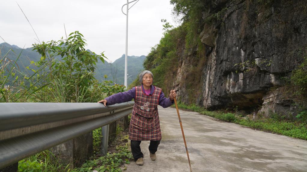蓝凤秀行走在“母亲天路”上(2021年4月9日摄)。新华社记者胡佳丽摄