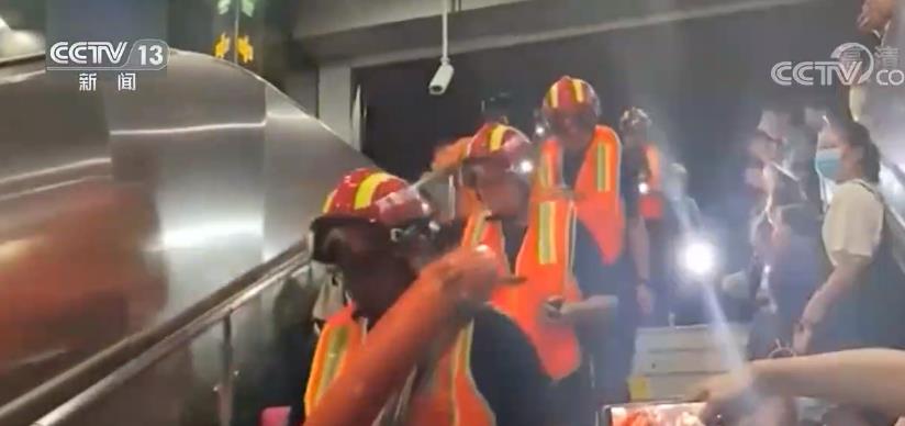 地铁乘客 张先生:我们身边的人就是扒着隧道旁边的栏杆,我们大概估计有十几个人吧,一起在那爬,因为水已经漫到我们肩膀了,水冲劲太大了,当时都差点想放弃,一看到消防官兵来了,就感觉心里踏实多了。