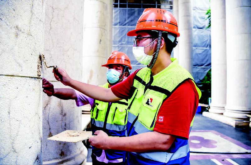 保护老建筑,是一座城市的文脉传承。杨小兵很自豪自己的工作,用匠心填补每一道细微的裂纹,让每一栋建筑都能找回当年的荣光。他说他在守护一份内心的安宁,守护这座城市里,闪烁的文化之光。(据《劳动报》报道 劳动报记者 邵未来 摄影 颜筱依)