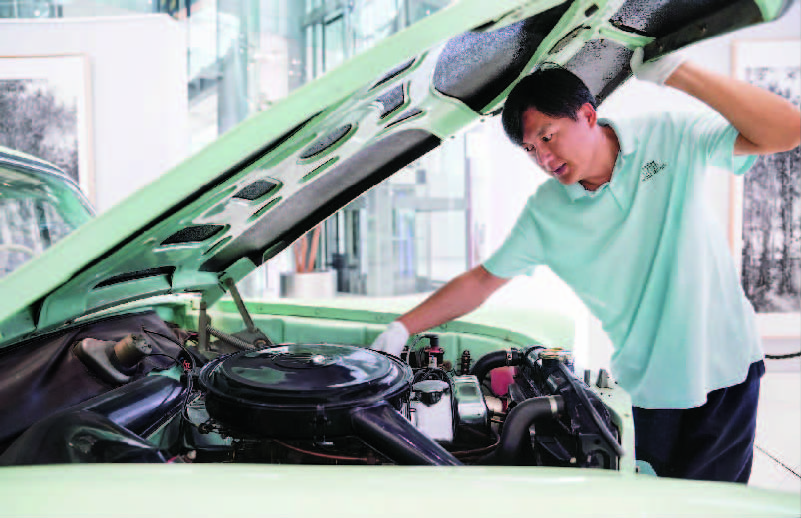 2007年,上海汽车博物馆正式开馆,首批展车除了少部分自筹的之外,许多都是向国内外同行借来的,其品质之高、保养之精细,让刚从修车工应聘入职的胡辉刚大开眼界。几年时间很快过去,借来的展车陆续归还,陆续补充进来的老爷车,保养状况根本无法与之前的相提并论,巨大的“落差”刺激着胡辉刚,他由此下定决心,在老爷车保养领域要赶上与国内外同行的差距。