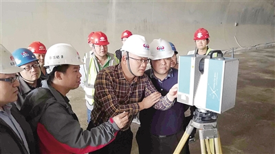 韩富庆前排(右二)使用三维激光扫描查看隧道变形情况 郭国和/摄