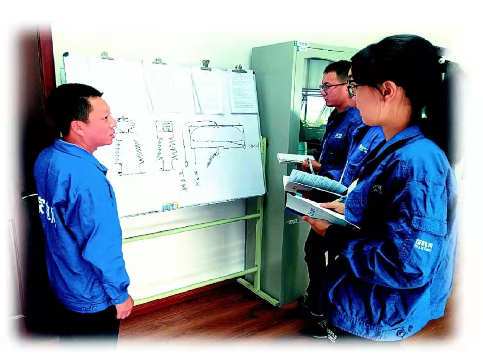 安师拥有丰富的工作经验,现场检修得心应手,教书育人也不在话下。可谓武能搞检修、文能训徒儿。在增强基本技能方面,安师自有一套。一方面,注重检修技能提升,钻研检修技巧,注重检修质量,精益求精是他的追求。在安师的调教下,“安徒生”们茁壮成长,检修技能步步升高;另一方面,坚持开展“员工大讲堂”,鼓励大家总结并分享自身工作经验,积极开展“随时实地微课堂”,去往食堂的路上、下班回家的途中、检修工作的间隙都是“安徒生”们学习的课堂。安师用自己的行动影响着每一个徒弟,大家也用自己的努力向着创新“突围”。