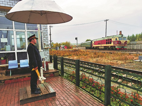 11时18分,一列满载煤炭的列车鸣笛从这里经过。杨亚千身姿挺拔,目送列车通过。“在这样嘈杂的环境下工作,已经习惯了。”他说,在家休息时听不见火车的鸣笛声,还有点不习惯呢!这些年,他已经说不清多少次听见鸣笛声,多少次发出喊话联络声,多少次对过往行人耐心解答……