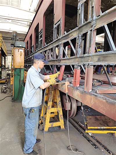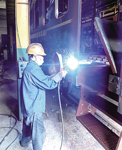 朱叶平在进行车体焊修 乐海/摄